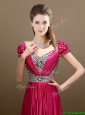Elegant Empire Short Sleeves Beading Prom Dresses for 2016