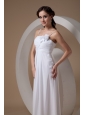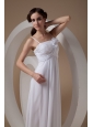 Elegant Empire Spaghetti Straps Wedding Dress Chiffon Ruch and Hand Made Flowers Ankle-length