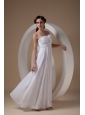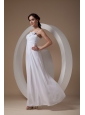 Simply gorgeous of this white prom dress is the feeling at your first sight. The dainty bodice adorned with two spaghetti straps, subdued ruchings, and exquisite handmade roses decoration, which will make you attract more attention. The floor length chiffon skirt is soft and elegant that flows freely to flatter most figures. A zipper up in the back completes this glamorous design.