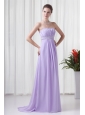 Elegant Empire Strapless Court Train Beading Lavender Prom Dress with Backless