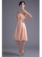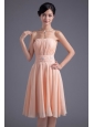 Elegant Empire Strapless V-neck Knee-length Chiffon Champagne Prom Dress with Beading