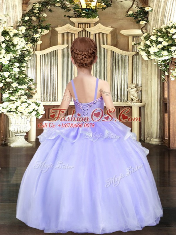 Elegant Floor Length Ball Gowns Sleeveless Pink Little Girls Pageant Dress Lace Up