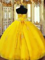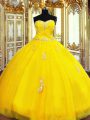Elegant Floor Length Lace Up Quinceanera Dress Gold for Military Ball and Sweet 16 and Quinceanera with Beading and Appliques