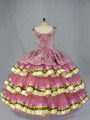 Elegant Floor Length Lace Up Quinceanera Dress Pink for Sweet 16 and Quinceanera with Embroidery and Ruffled Layers