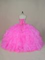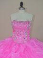 Elegant Floor Length Pink Ball Gown Prom Dress Organza Sleeveless Beading and Ruffles