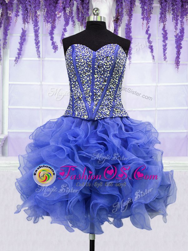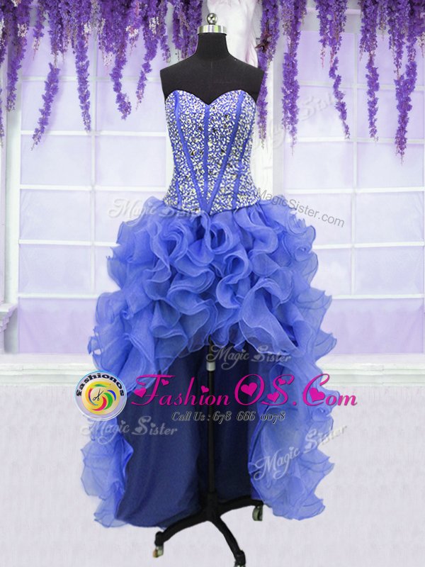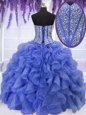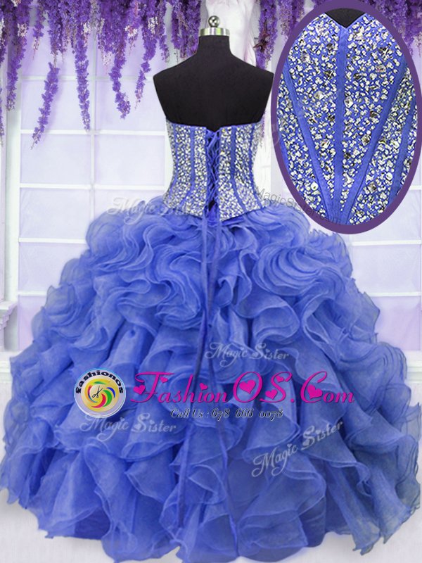 Elegant Four Piece Sleeveless Lace Up Floor Length Ruffles and Sequins Sweet 16 Dresses