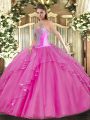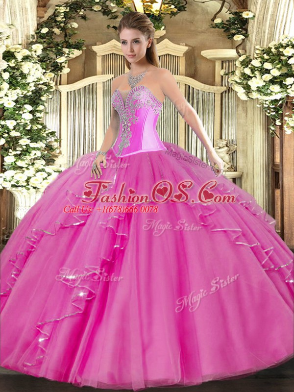 Elegant Fuchsia Lace Up 15 Quinceanera Dress Beading and Ruffles Sleeveless Floor Length