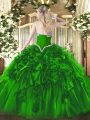 Elegant Fuchsia Organza Lace Up Quince Ball Gowns Sleeveless Floor Length Beading and Ruffles