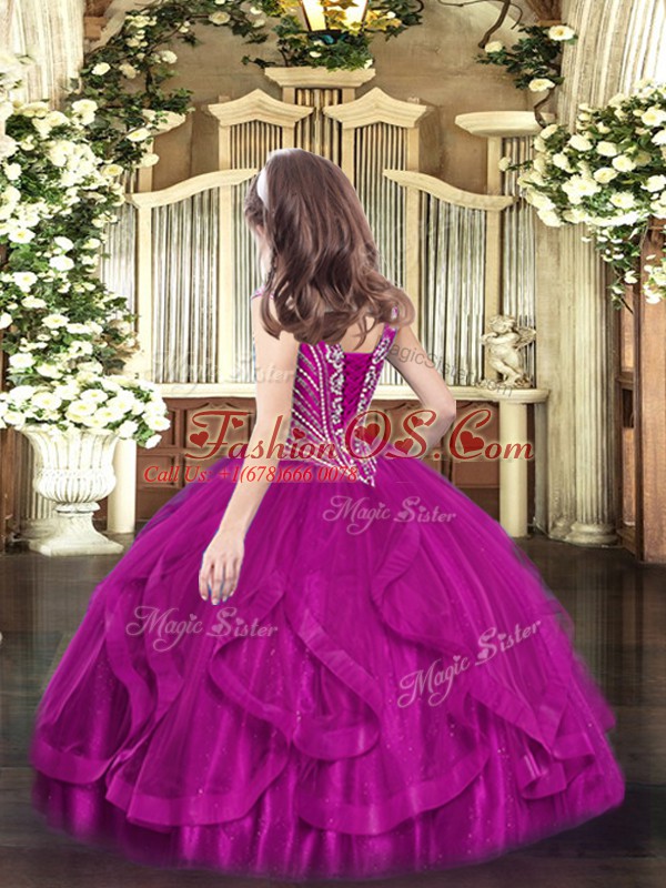 Elegant Fuchsia Sleeveless Beading and Ruffles Floor Length Kids Formal Wear