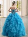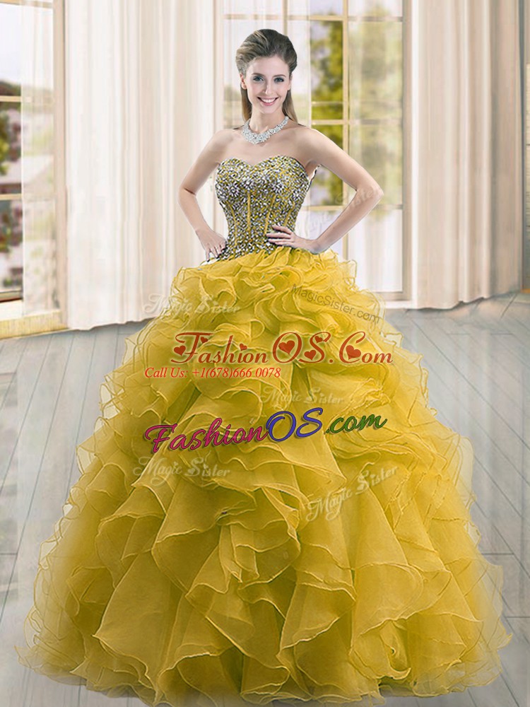 Elegant Gold Lace Up Sweetheart Beading and Ruffles 15 Quinceanera Dress Organza Sleeveless