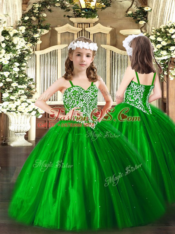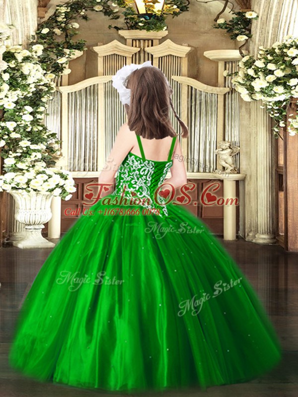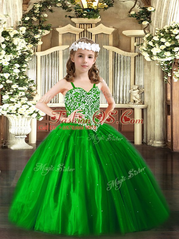 Home >  Special Occasion Dresses >  Beautiful Kids Pageant Dresses > Elegant Green Tulle Lace Up Straps Sleeveless Floor Length High School Pageant Dress Beading