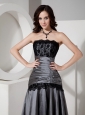 Home >  Evening Dresses > Elegant Grey Evening Dress A-Line / Princess Strapless Taffeta Lace Floor-length