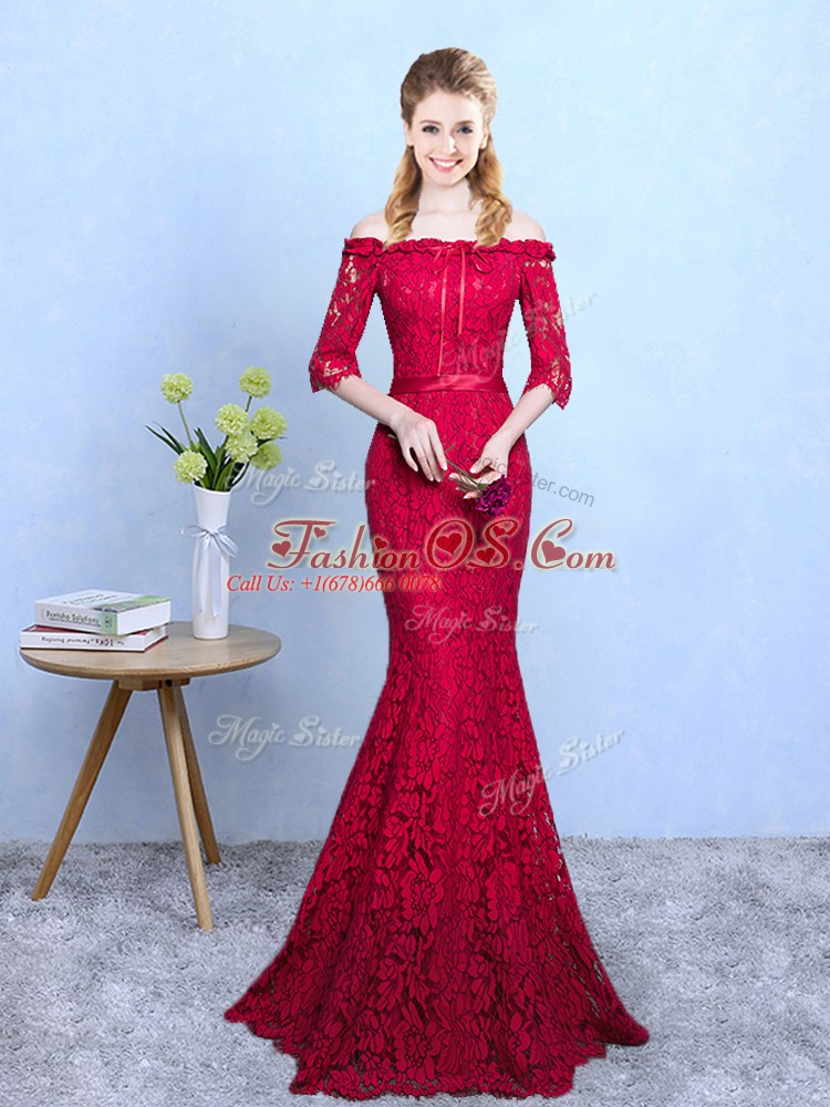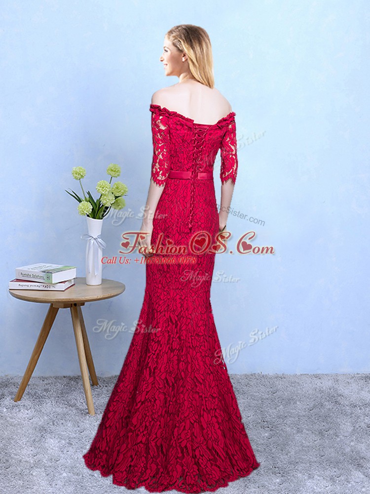 Elegant Half Sleeves Lace Up Floor Length Lace Court Dresses for Sweet 16
