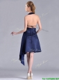 Elegant Halter Top Asymmetrical Navy Blue Mother of the Bride Dress in Satin