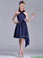 Home >  Special Occasion Dresses >  Mother of the Bride Dresses > Elegant Halter Top Asymmetrical Navy Blue Mother of the Bride Dress in Satin