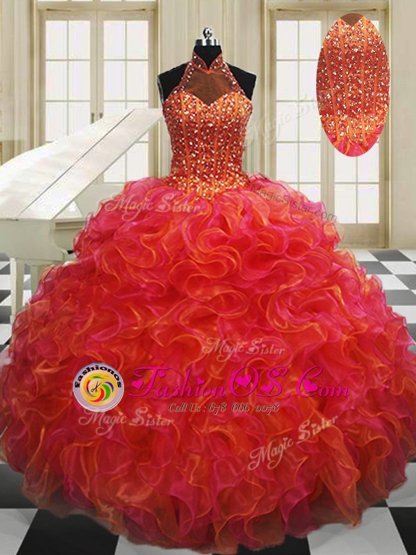 Elegant Halter Top Floor Length Ball Gowns Sleeveless Multi-color Quinceanera Dresses Lace Up