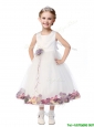 Elegant Hand Made Flowers and Applique Scoop Flower Girl Dress in White