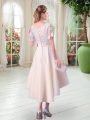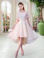 Elegant High Low Champagne Tulle Short Sleeves Lace