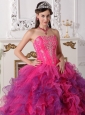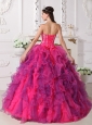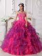 When it comes to lavish allure, you can`t do better than this strapless sweetheart quinceanera ball gown! Gorgeous, colorful ruffles crowd along its flared, floor-length skirt.Intricate, chic embroidery match up in a perfect way.Classic fit and flare!