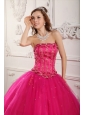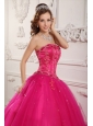 Elegant Hot Pink Quinceanera Dress Strapless Tulle Beading Ball Gown