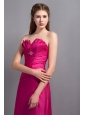 Elegant Hot Pink V-neck Bridesmaid Dress with Beading
