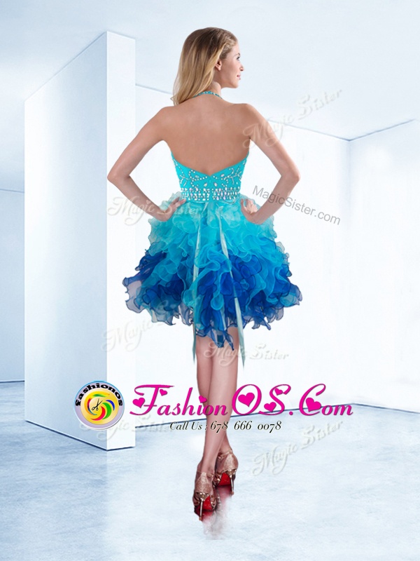 Elegant Knee Length Multi-color Prom Evening Gown Halter Top Sleeveless Zipper