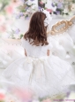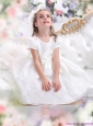 Elegant Lace 2015 White Little Girl Pageant Dress with Short Sleeves and Bowknot