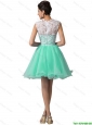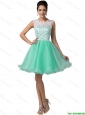 Elegant Laced Scoop A Line Prom Dresses in Apple Green