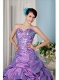 Elegant Lavender A-line Sweetheart 15 Quinceanera Dress Taffeta Sequins Floor-length