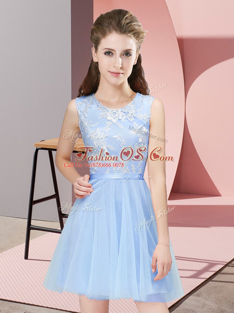 Elegant Light Blue Side Zipper Scoop Lace Court Dresses for Sweet 16 Tulle Sleeveless
