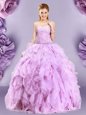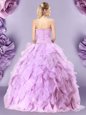Elegant Lilac Sweetheart Neckline Beading and Ruffles Quinceanera Dresses Sleeveless Zipper