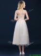 Elegant Low Price Strapless Belt Champagne Long Bridesmaid Dresses in Tulle
