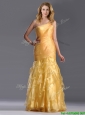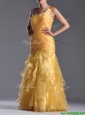 Home >  Prom Dresses >  Cheap Prom Dresses > Elegant Mermaid One Shoulder Organza Ruffled Prom Dress in Gold