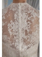 Gorgeous and magnificent! This strappy sweep wedding dress is accented with the embroidered boned lace throughout the dress. Full of modern flavor and pageantry, the dress is by no means ordinary. The staps are see-through, which gives a sexy look. Ornamented with small pearls, the dress is even flattering.