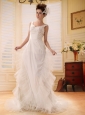 This romantic white wedding dress dropped naturallly and characterd with a light V-neckline in the front that you will looks sexy yet decent when you wear it. Shining beadings on the top straps and pleated bodice modifites your charming figure and slight ruffles of the skirt makes it complement with the bodice. You will be the shinning star when you go out in it.