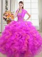 Elegant Multi-color Ball Gowns Beading and Ruffles Quinceanera Gown Lace Up Organza Sleeveless Floor Length