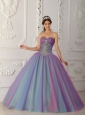 Elegant Multi-color Quinceanera Dress Sweetheart Tulle Beading Ball Gown