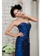 Elegant Navy Blue Prom / Evening Dress Column Sweetheart Beading Floor-length Taffeta