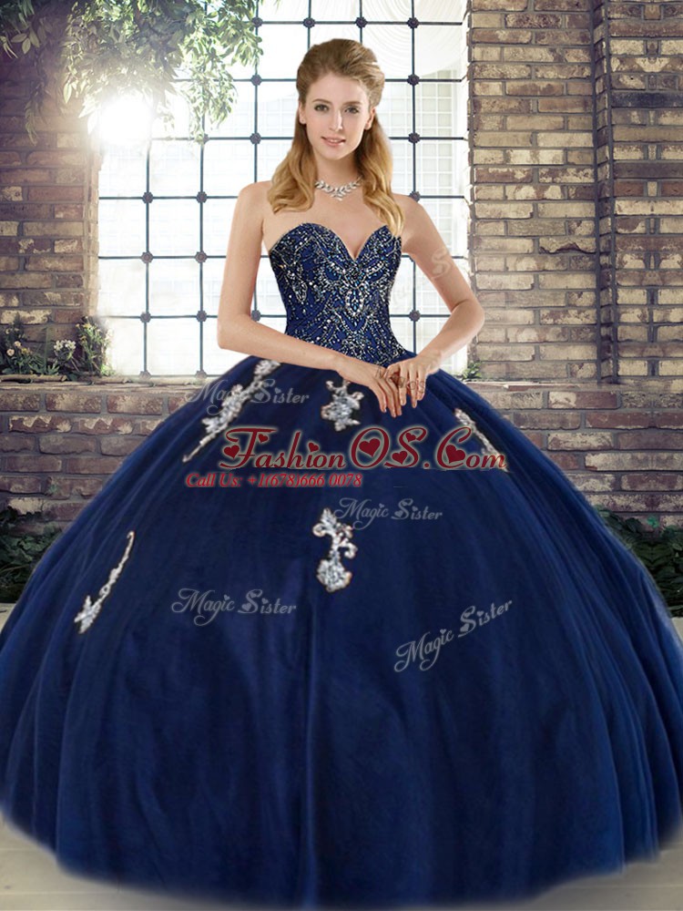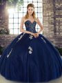 Elegant Navy Blue Quinceanera Gowns Military Ball and Sweet 16 and Quinceanera with Beading and Appliques Sweetheart Sleeveless Lace Up