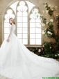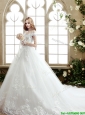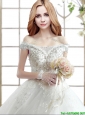 Elegant Off the Shoulder Beaded Wedding Dress with Court Train