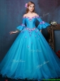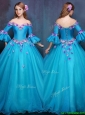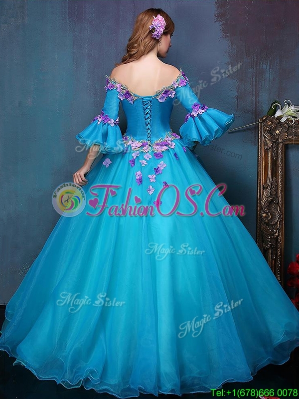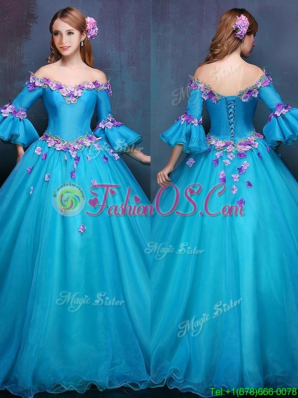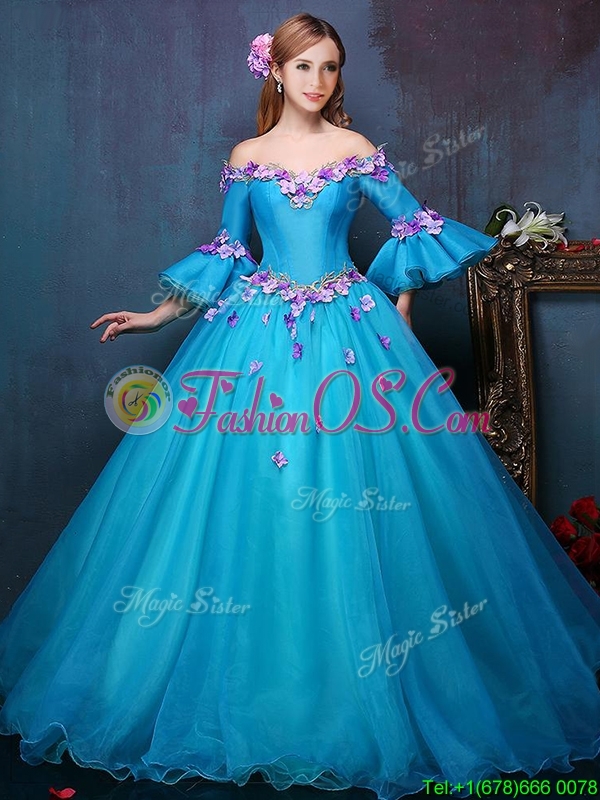 Elegant Off the Shoulder Three Fourth Length Sleeves Quinceanera Dress with Appliques
