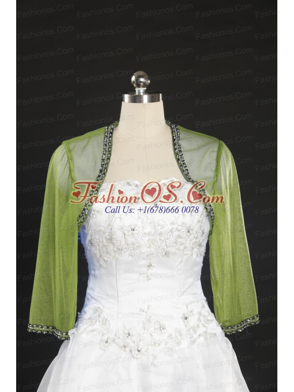 Home >  Accessories >  Wraps > Elegant Olive Green Long Sleeves 2014 Wraps with Beading