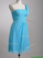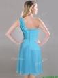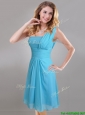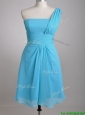 Elegant One Shoulder Ruched Chiffon Dama Dresses for Quinceanera in Aqua Blue