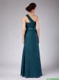 Elegant One Shoulder Teal Prom Dresses with Ruching 2015