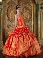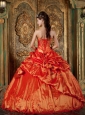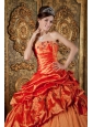 Elegant Orange Red Quinceanera Dress Strapless Pick-ups Taffeta Ball Gown
