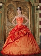 Home >  Quinceanera Dresses >  Puffy Quinceanera Dresses > Elegant Orange Red Quinceanera Dress Strapless Pick-ups Taffeta Ball Gown