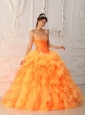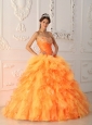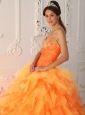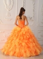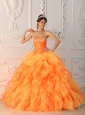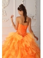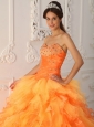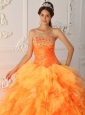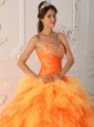 Elegant Orange Red Quinceanera Dress Sweetheart Organza Beading and Ruch Ball Gown