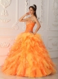 Home >  Quinceanera Dresses >  Popular Quinceanera Dresses > Elegant Orange Red Quinceanera Dress Sweetheart Organza Beading and Ruch Ball Gown