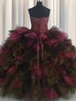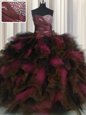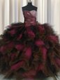 Elegant Organza and Tulle Sweetheart Sleeveless Lace Up Beading and Ruffles and Ruffled Layers 15th Birthday Dress in Wine Red