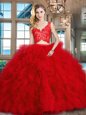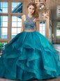 Elegant Organza Sleeveless With Train 15th Birthday Dress Brush Train and Beading